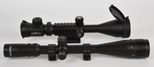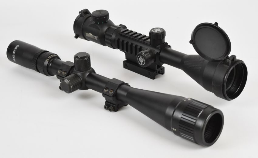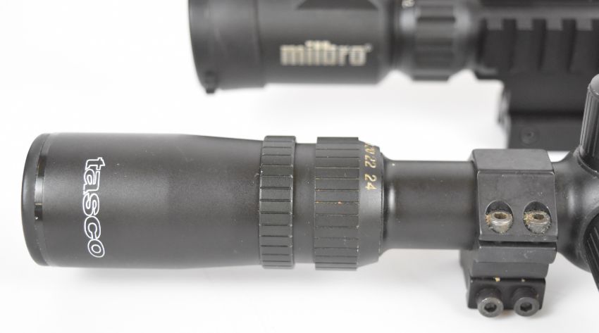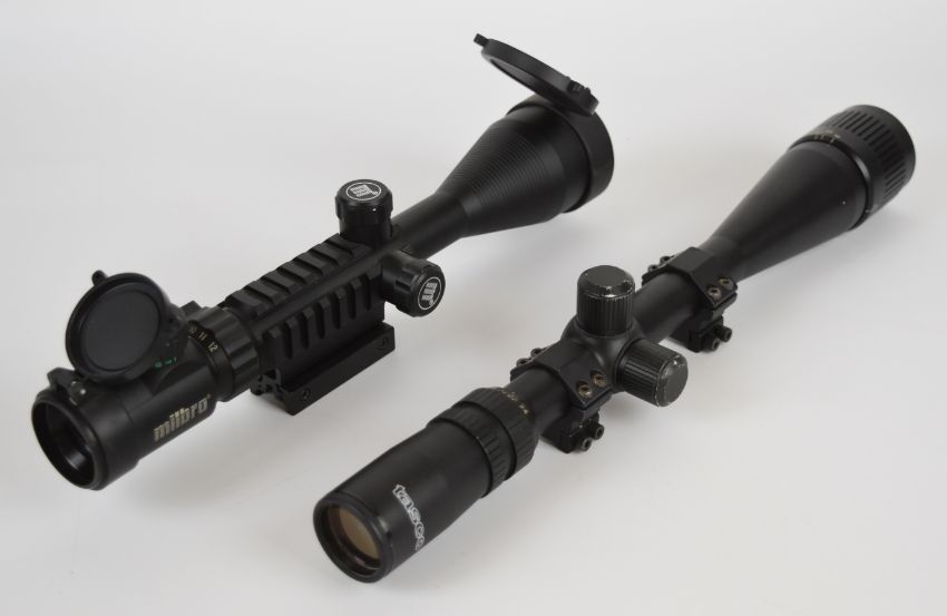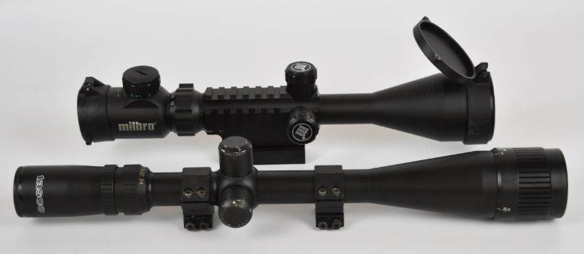 Two rifle scopes Milbro Clearview C 4-12x50 EG with rail mount and lens covers and Tasco 624x42 M.