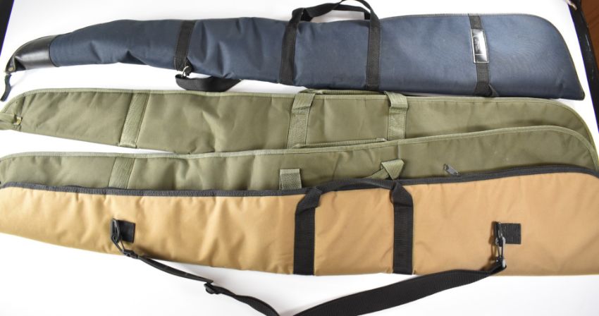 Four various padded shotgun or rifle slips including one Elderkin & Son Gunmakers, Spalding.