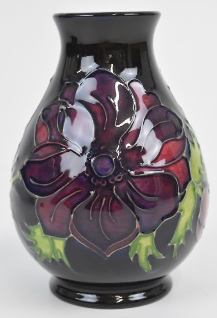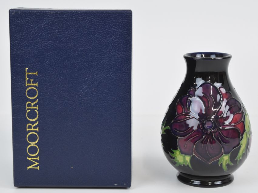 Moorcroft pedestal vase decorated in the Anemone pattern, in original box, height 13.5cm