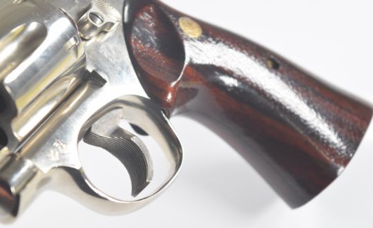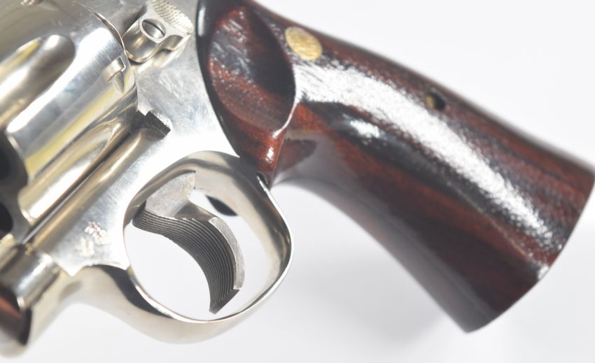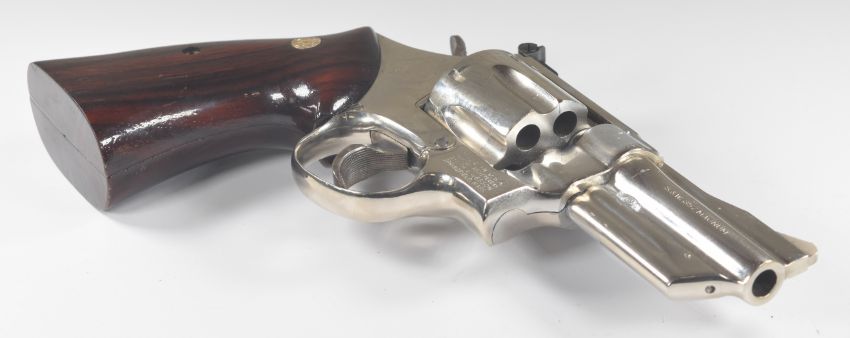 Deactivated Smith & Wesson .357 Magnum six-shot double-action revolver with inset monograms to the wooden grips, named and monogrammed frame, adjustable sights and 3.5 inch barrel, overall length 27cm, serial number N186684, with deactivation certificate dated 07/03/24.