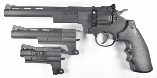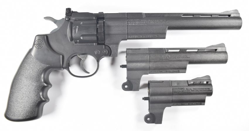 Crosman Triple Threat .177 CO2 air pistol / revolver with named and textured grips, 10-shot magazines, adjustable sights and three barrels, NVSN PLEASE NOTE:- Before bidding please ensure that you are fully aware of any law regarding ownership and of any limitations on shipping of this item