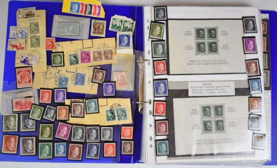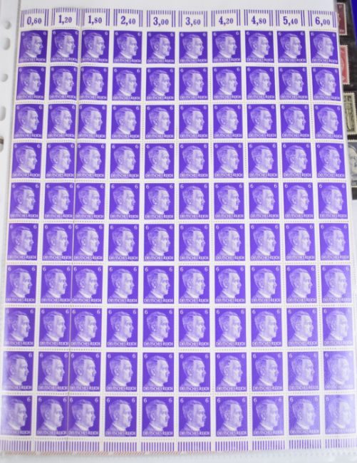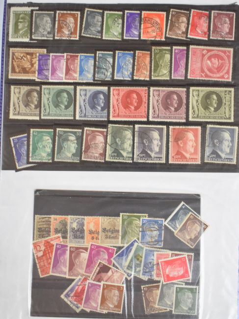 A collection of approximately 1500 German Nazi Third Reich related stamps including a complete set of 100, some with Hitler's profile etc
