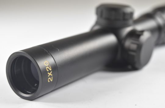 Weihrauch 2x20 air pistol scope with lens covers, suitable for a HW44 PCP or similar pistol.