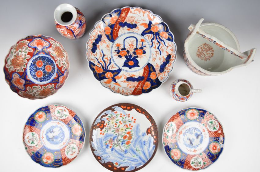 19th / 20thc Japanese Imari ceramics including a basket, tallest 19cm