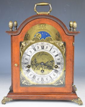 Franz Hermle Holland three train mantel or bracket clock with moonphase, striking on a set of gongs, overall height 29.5cm