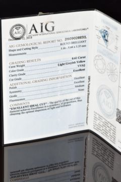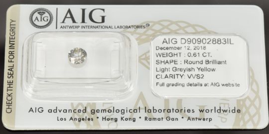 A loose 0.61ct round brilliant cut light greyish yellow diamond, with certificate