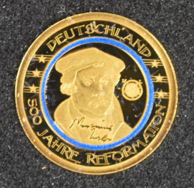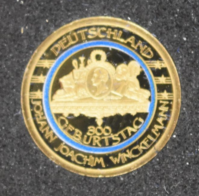 Set of ten miniature 20 euro .585 gold coins, each 0.5g, with German certificates, together with a .999 fine gold gold coin, 0.5g, with certificate
