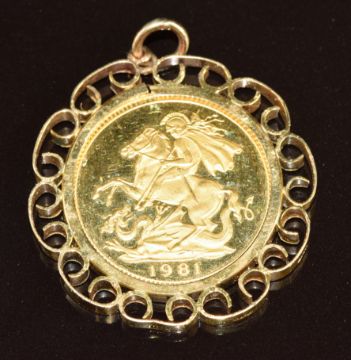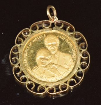 A 9ct gold 1981 limited edition sovereign The Wedding of HRH The Prince of Wales and Diana Spencer, in 9ct gold pendant mount, 8.4g