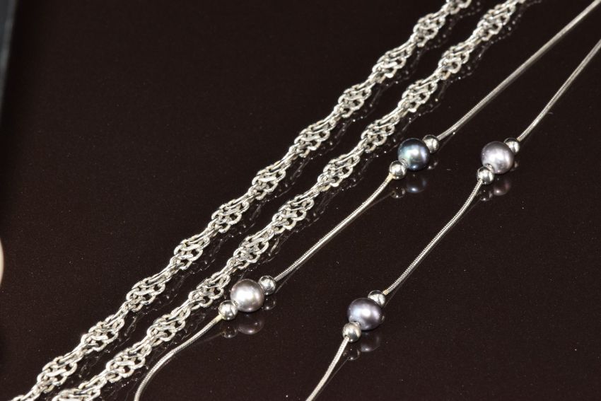A 9ct white gold chain/ necklace and a 9ct white gold necklace set with pearls, 8.7g, 45 & 43cm