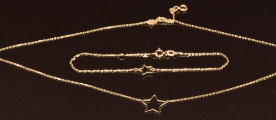 A 9ct gold star bracelet and necklace, 2.2g