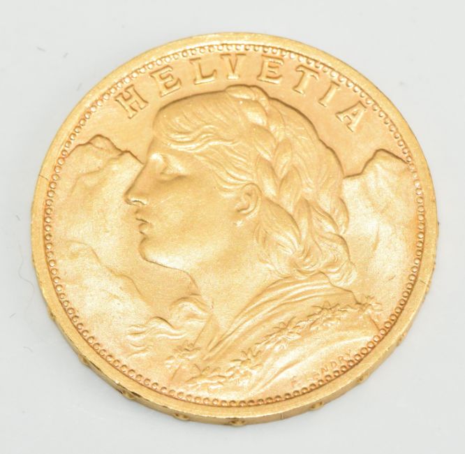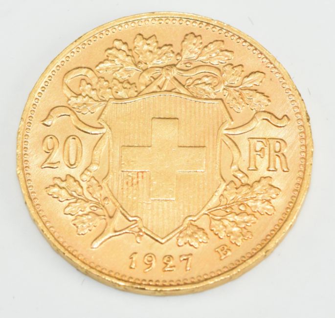 1927 Swiss 20 Franc gold coin