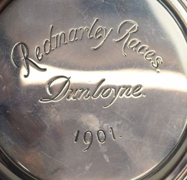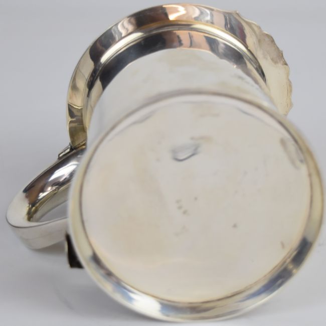 Victorian hallmarked silver lidded tankard in the Georgian style, with heart shaped decoration to the lower end of the handle, engraved for Redmarley Races Dunboyne 1901 to Harry J Green, from H.M.Wilson, Master Ledbury Hounds, London 1899, maker Edward Barnard & Sons Ltd, height 15cm, weight 660g