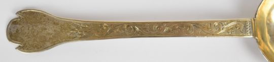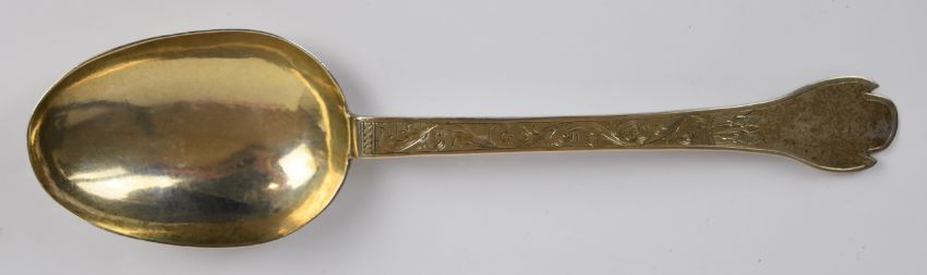 Likely 17th or earlier 18th century provincial hallmarked silver rat tail dog nose or trefid spoon, engraved and dated 1726, hallmarks indistinct but appear to be three identical marks, length 19.5cm, weight 41g
