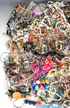 A collection of jewellery including amethyst necklaces, Art Deco Empire bracelet, Napier earrings, A & S necklace, etc