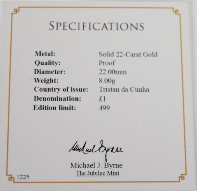 Harrington & Byrne cased limited edition (of 499) 2017 proof £1 80th Anniversary of George VI's Coronation 22ct gold coin, weight 8.00g, with Harrington & Byrne certificate