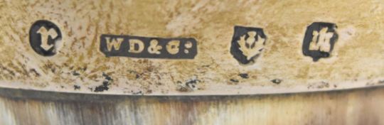 Scottish Victorian hallmarked silver rimmed horn beaker, Edinburgh 1898, maker William Dunningham & Co, height 12cm, together with a further larger horn beaker with silver plated rim and interior