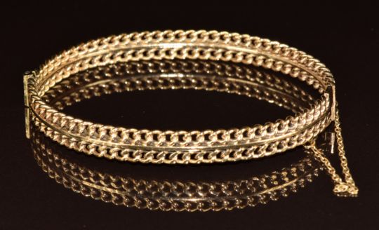A 9ct gold bangle made up of two rows of curb links, 13.4g, 4.8 x 6cm