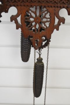 19th/ 20th century cuckoo clock with pierced and carved decoration, overall height of clock 53cm
