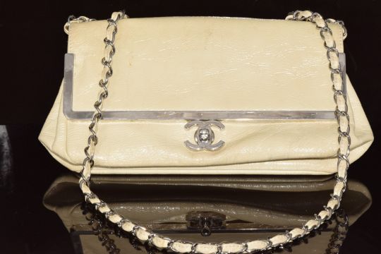 Chanel patent leather frame bag with signature CC clasp, 2006, with dust bag