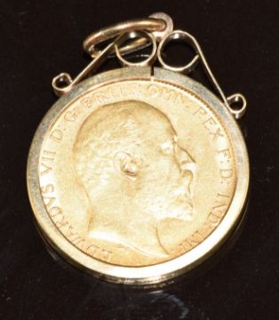 1909 gold half sovereign in 9ct gold pendant mount, 5.2g