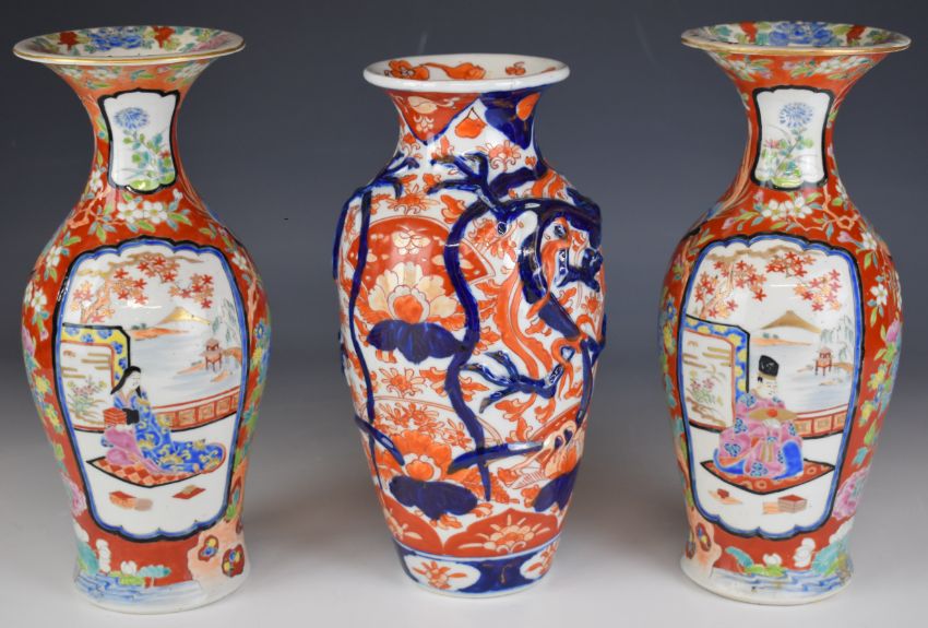 Three Japanese vases including one decorated in Chinese style with enamelled figural decoration, tallest 27cm