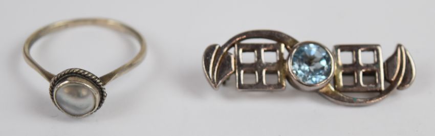 Silver bangle with ivy decoration, silver locket (Birmingham 1908), two silver rings, silver cross, silver brooch, 333 ring set with a zircon, Art Deco diamanté / paste buckles, diamanté bracelets, etc