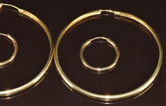 A pair of 18ct gold hoop earrings (7.9g) and a pair of 9ct gold hoop earrings (0.9g)