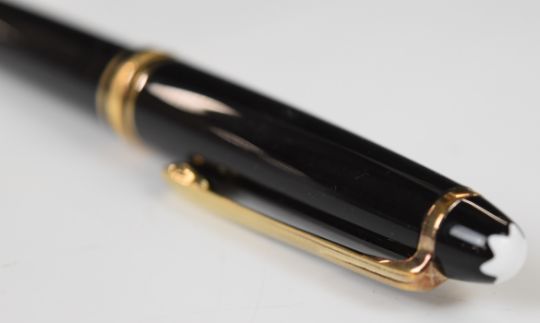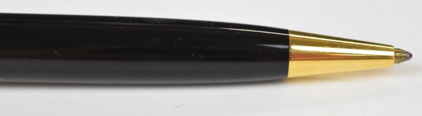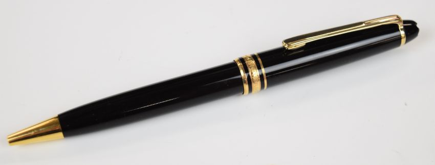 Montblanc Meisterstuck ballpoint pen with black body and gold plated fittings and clip, in original box with paperwork.
