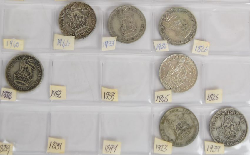 Victorian and later silver pre 1947 silver coinage including 1935 rocking horse crown, Edward VII florin and various small Victorian coins, weight of all coins and folder sheets 830g all in