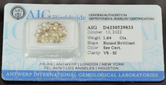 Forty natural light yellow-orange-brown round brilliant cut diamonds, each measuring 2.15-2.24mm, the total diamond weight 1.64ct, with certificate
