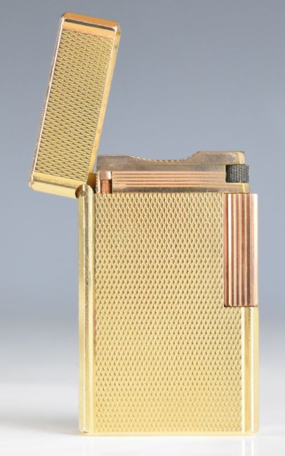 St Dupont gold plated lighter with textured finish, ref 14301 with After Service Guarantee Card