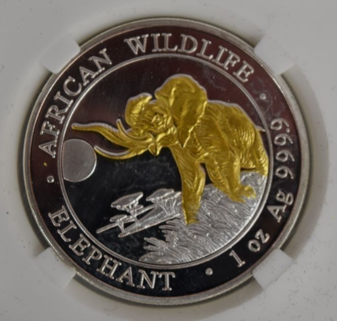 Silver coins and medallions comprising Cook Islands 925 50g silver Nano Sea coin, Monnaie De Paris Jeanne D'Arc 900 22.2g silver medallion, Somali African Elephant 1 ounce silver coin, Paul Vincze William I silver medallion and a cased Smithsonian 1872 commemorative coin