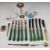 Bangle with blue stone decoration, marked 925, further bangle also marked 925, hallmarked silver trumpet vase, Georgian hallmarked silver salt spoon, hallmarked silver and mother of pearl butter knife, silver plated vesta case and a quantity of Art Deco green handled cutlery