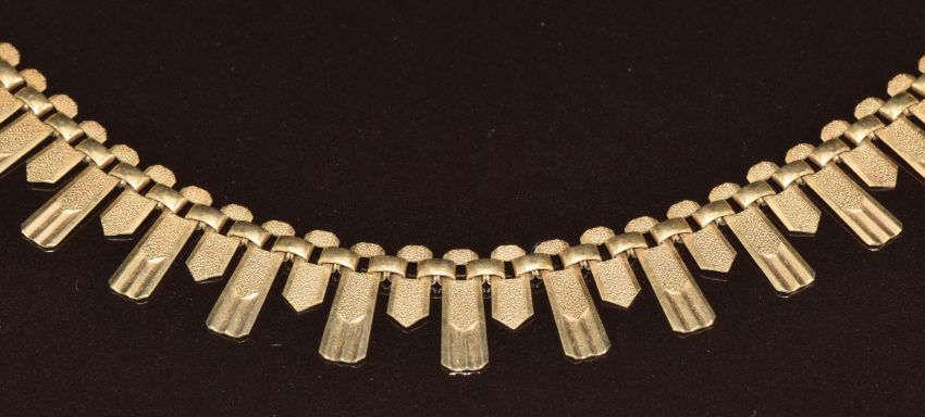 A 9ct gold Cleopatra style necklace, 15.8g, 39cm