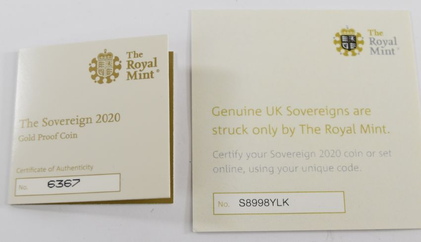 Royal Mint cased limited edition (6367/7995) proof 2020 Elizabeth II gold full sovereign, with Royal Mint certificate