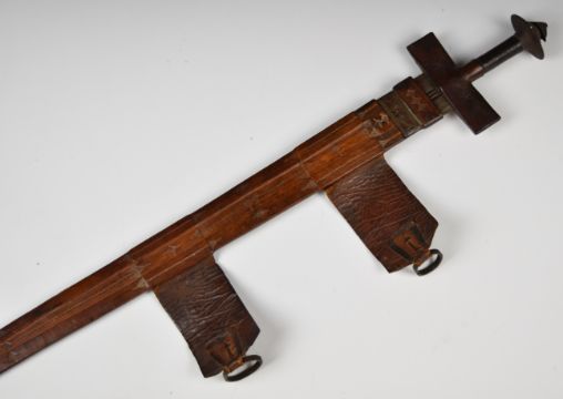 North African Tuareg sword in leather scabbard, L106cm. WE ARE NOT ABLE TO OFFER OUR USUAL POSTAGE SERVICE FOR THIS LOT