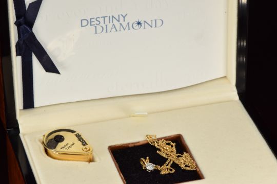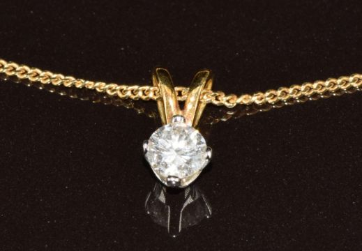 An 18ct gold pendant set with a round cut diamond of approximately 0.33ct, on 18ct gold chain, in original box
