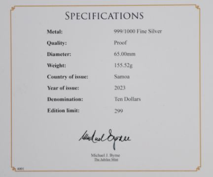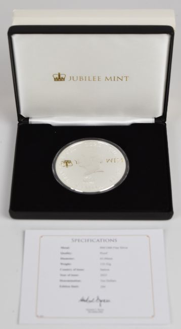 Jubilee Mint cased limited edition (of 299) 2023 proof five ounce Coronation of King Charles III silver coin, with certificate