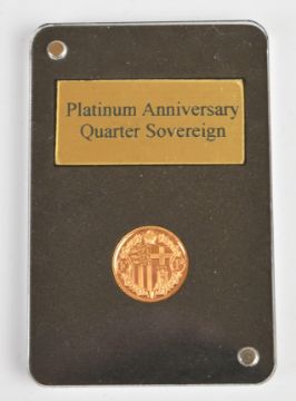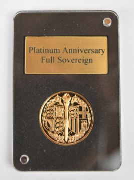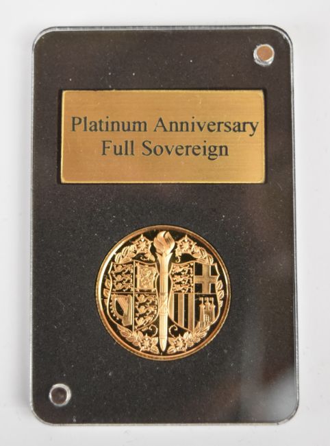 Cased three coin 2017 Elizabeth II platinum anniversary coin set comprising one full, one half and one quarter gold sovereigns