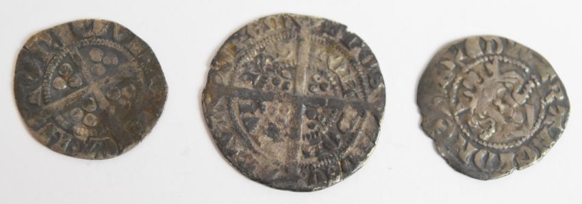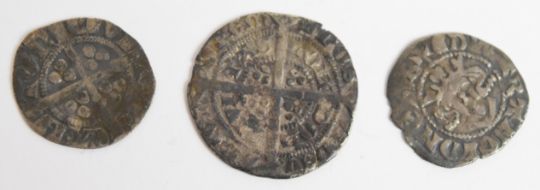 Edward I/II hammered silver pennies 1272-1327, both Canterbury Mint examples together with an Edward III 1327-1377 half groat London Mint