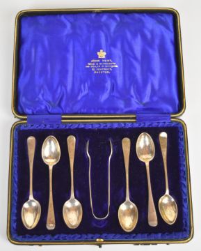 Edward VII set of hallmarked silver teaspoons and sugar nips, Sheffield 1906, maker Joseph Rodgers & Sons, weight 100g