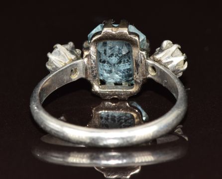 A platinum ring set with paste and two white sapphires, 4.3g, size M