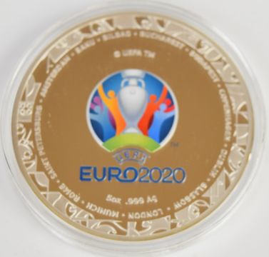 Harrington & Byrne cased limited edition (25/295) proof Euro 2020 five ounce silver coin, with Harrington & Byrne certificate