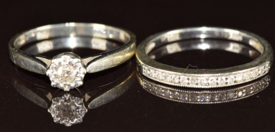 Two 9ct white gold rings set with diamonds, 3.6g, size N