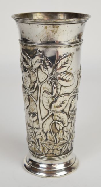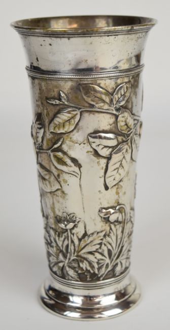Anton Michelsen Danish silver vase with embossed decoration of flowers and 1898 Danish silver marks to base, height 18.5cm, weight 332g