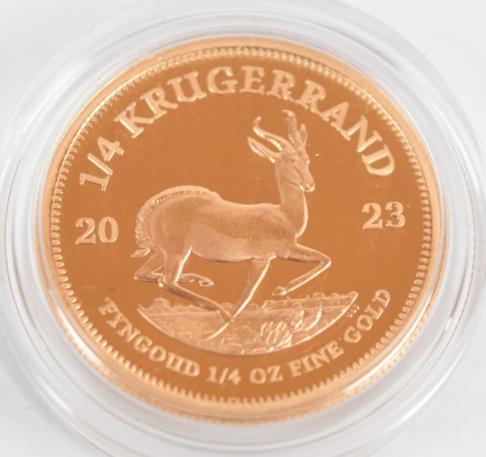 South African Mint cased limited edition (0222/2000) 2023 gold proof ¼ ounce Krugerrand