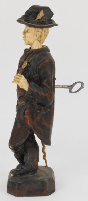 Late 19th / 20thC German / Black Forest carved wood and ivory automaton of a whistling tramp leaning on his stick, with rotating head, H36cm