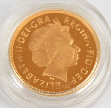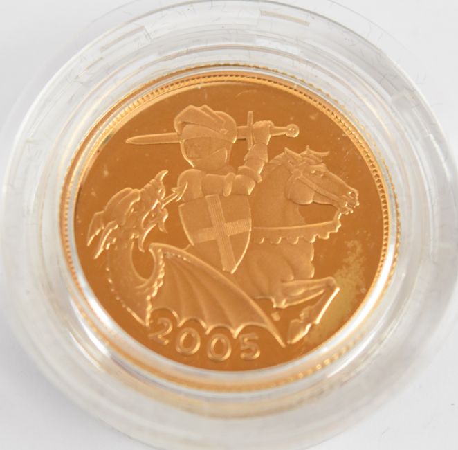 Royal Mint cased limited edition (6,183/12,500) proof 2005 gold full sovereign, with Royal Mint certificate
