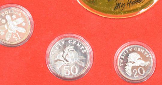 Two Singapore cased limited edition proof silver coin sets comprising 1986 six coin set ($1 to one cent) and 1995 seven coin set ($5 to one cent), both with certificates