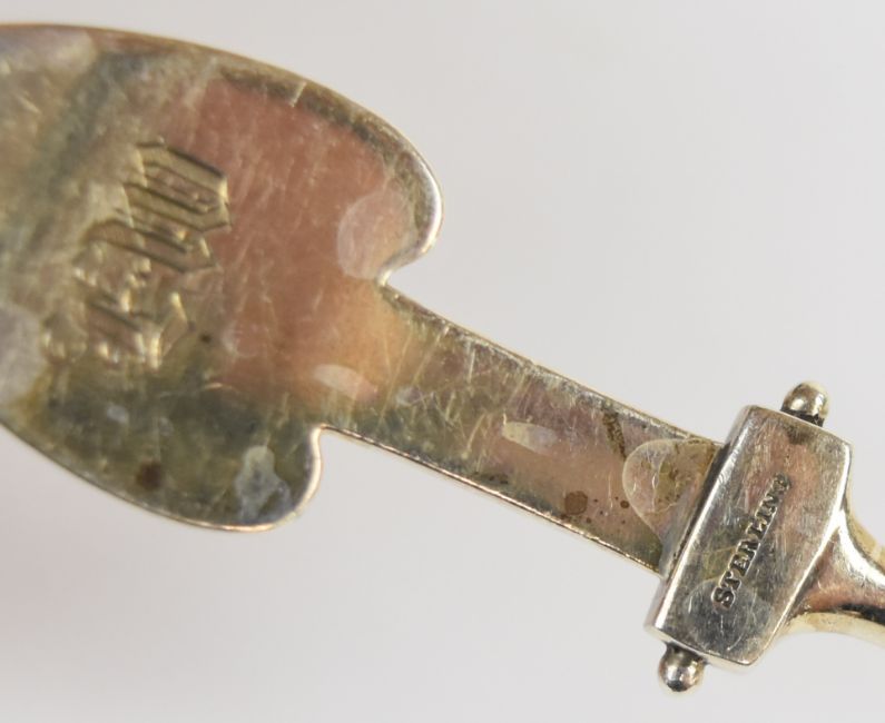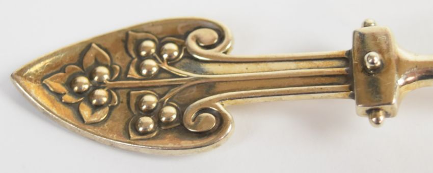 American Art Nouveau silver gilt serving spoon marked sterling, length 24cm, weight 80g